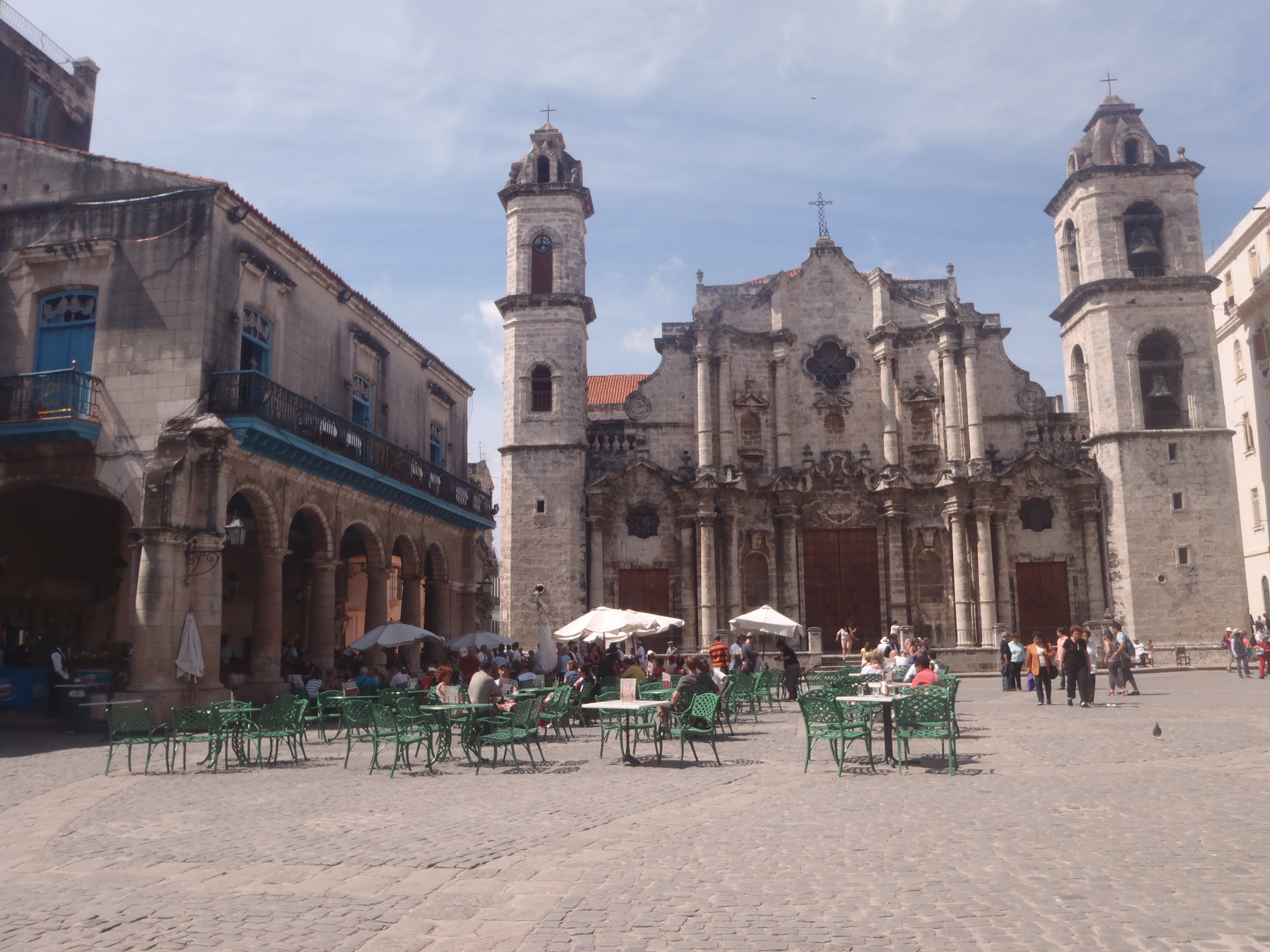 Continuamos callejeando horas y horas, pasando por la Plaza Vieja, la Calle Santa Clara, la calle Luz, la calle Sol. Casas sin restaurar, con cornisas, balcones, vigas, portones de belleza decadente. La gente por la calle, los niños jugando, bicitaxis preguntando y probamos unos merengues y un buen jugo de piña.