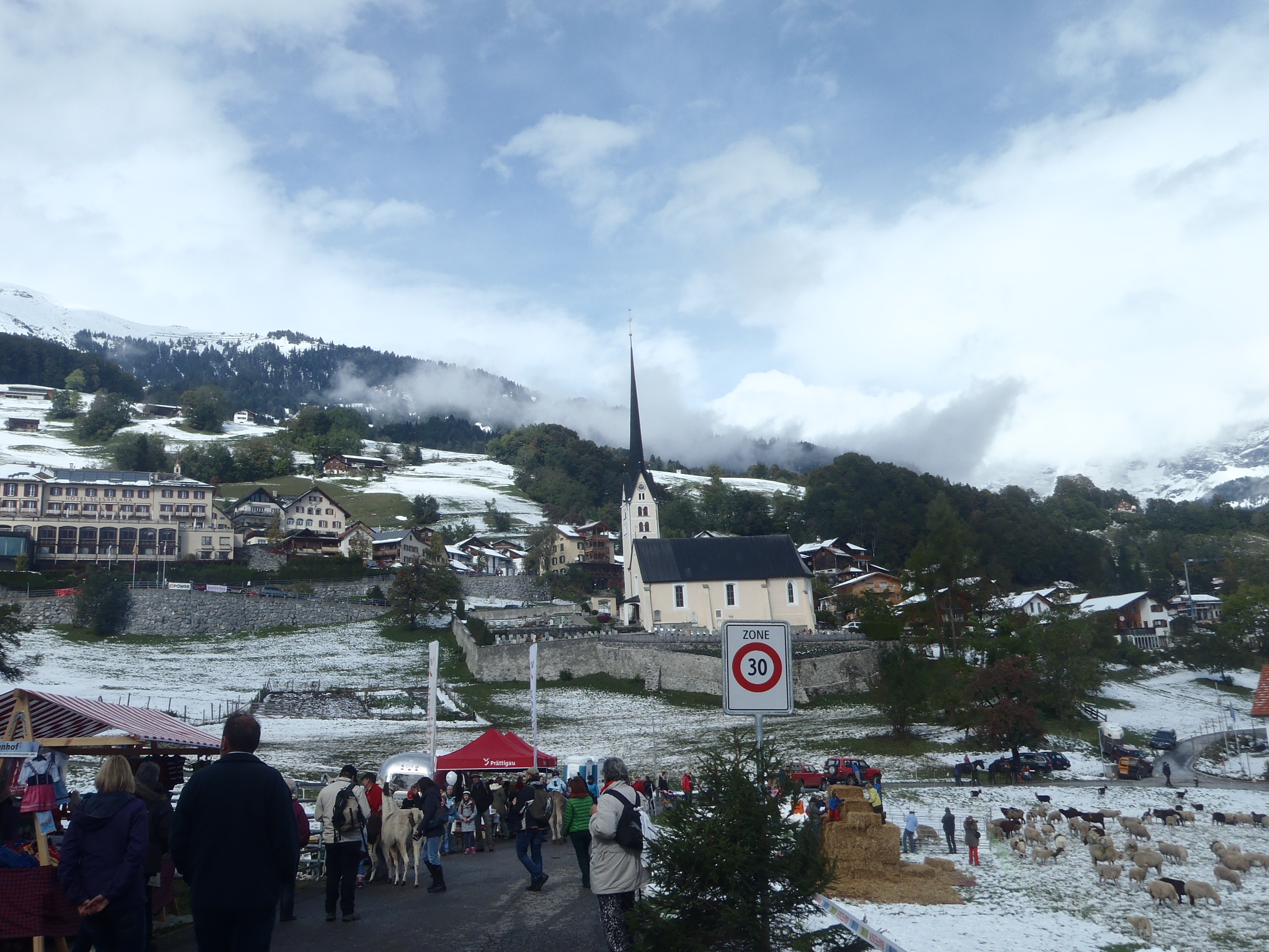 Ya hemos hecho más de una excursión al cantón de los Grisones o Graubünden, pero este fin de semana lo hicimos acompañados de unos amigos de esa región. El sábado lo dedicamos al Alp Spektakel en Seewis y su mercadillo de queso o Käsemarkt. Si hubiéramos madrugado un poquillo podríamos haber disfrutado del Alpzug (que es la bajada que hacen de las vacas, de los verdes prados que se irán llenando de nieve, a los establos donde estarán resguardadas en invierno), pero aún así se trata de un evento que vale la pena visitar.