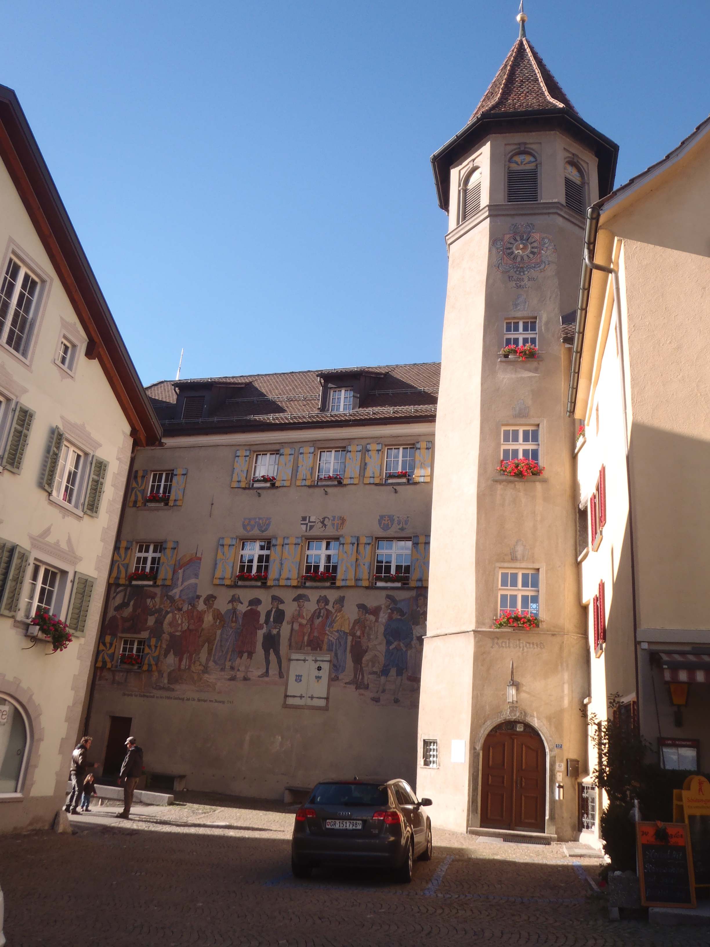 Llegamos a la pequeña Maienfeld, de calles con portales, arcos, paredes pintadas, con cierto encanto arquitectónico.