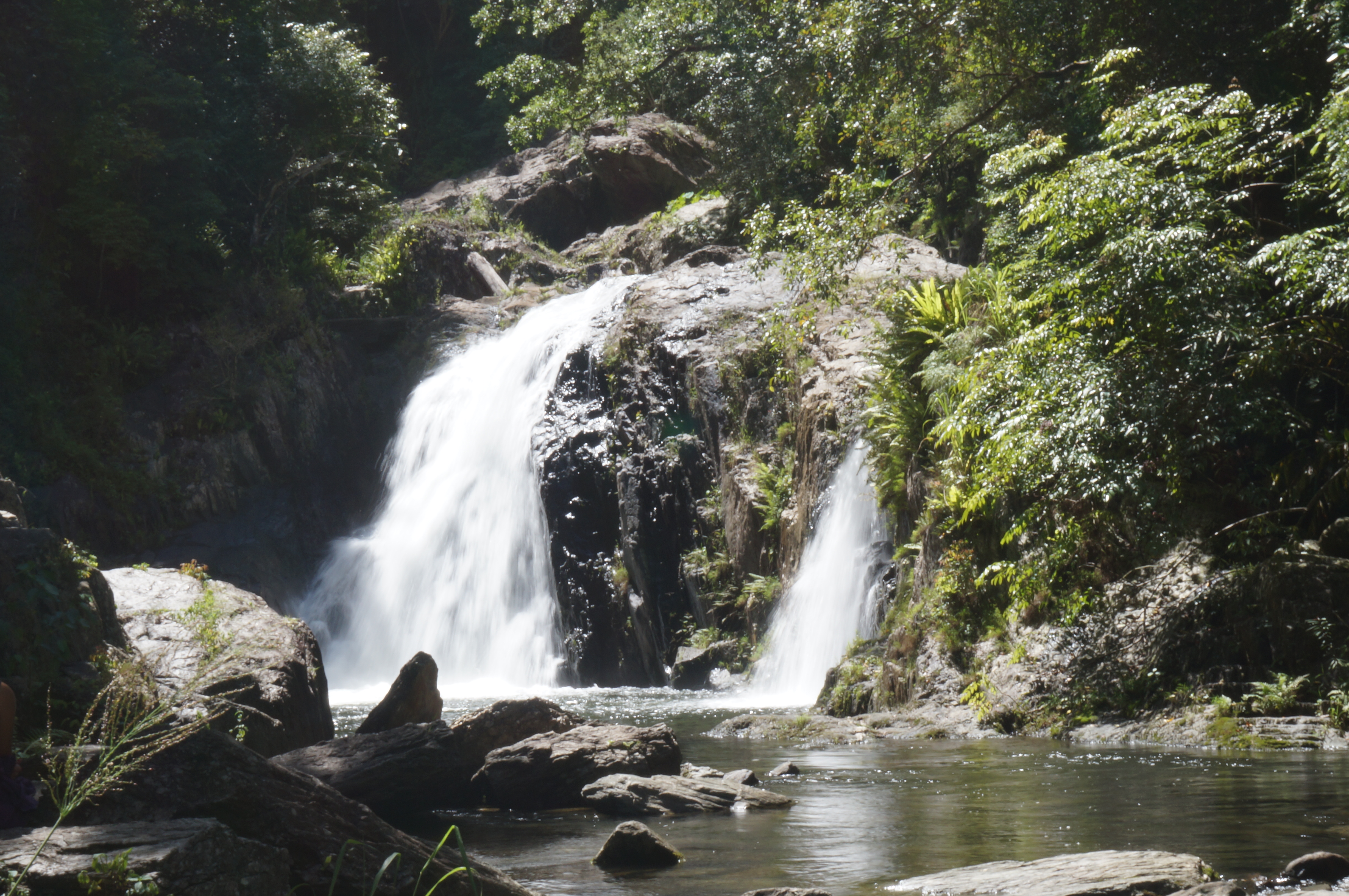 Y por último, bajo la tormenta tropical vimos las Elinjaa Falls. Si no hubiera llovido tanto hubiéramos seguido visitando el resto de cascadas de la zona.