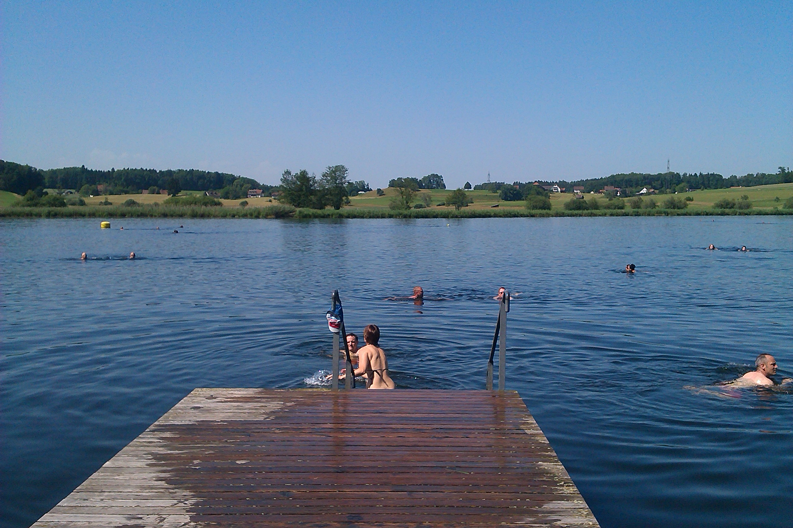 La tercera ruta es Lützelsee, cerca de Hombrechtikon. Como fuimos con 33 grados, no hicimos la ruta completa. Sólo nos dirigimos desde la última parada del bus Hombrechtikon Post andando unos 15 minutos hasta el Badi Lützelsee (4 CHF los adultos) y nos quedamos allí todo el día. Si la temperatura hubiera sido más suave, podríamos haber hecho esta ruta, pasando también por Egelsee.