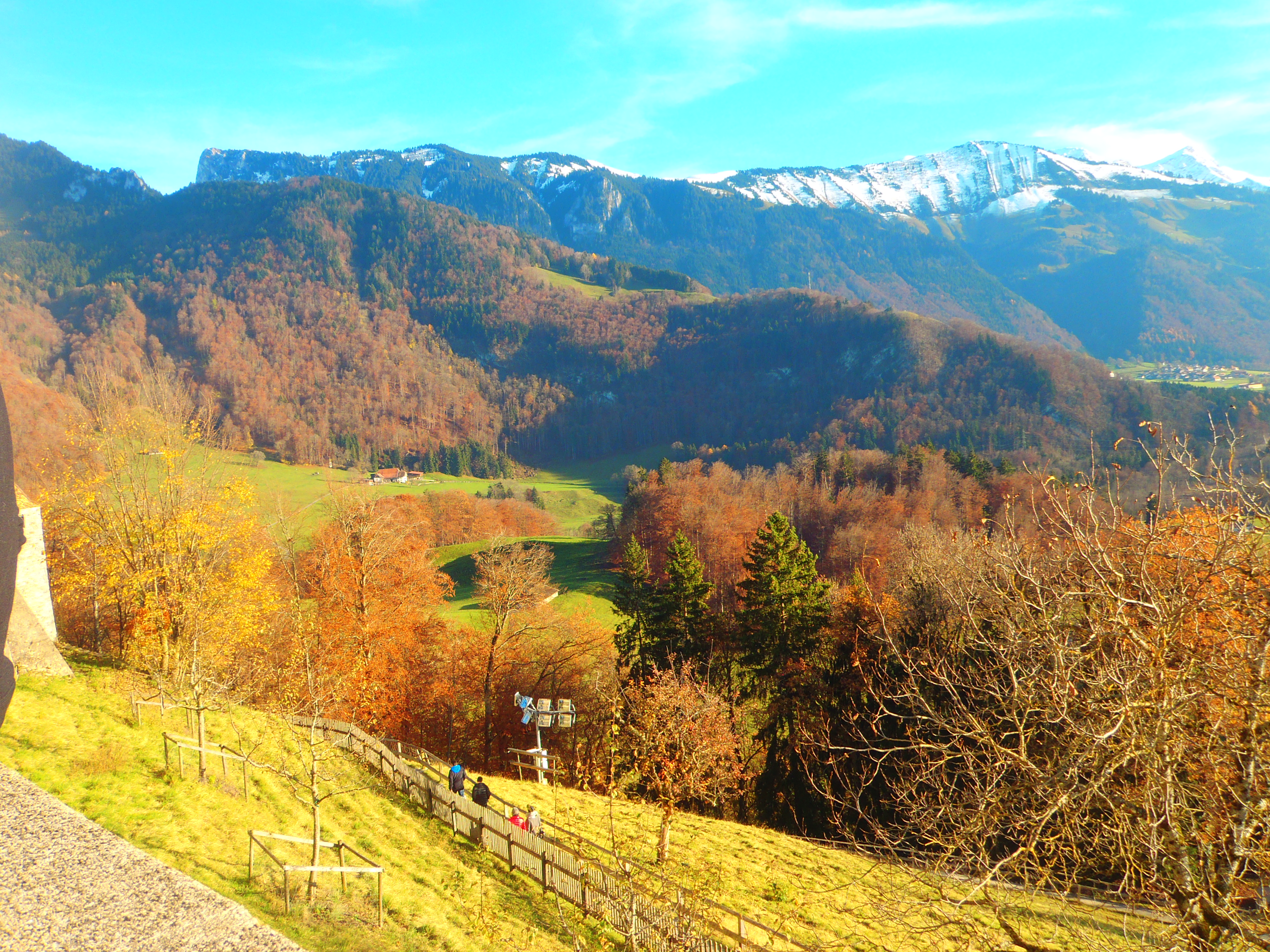 Salimos el sábado a las 9h de Zúrich, que estaba totalmente cubierta de una espesa niebla. Nuestra primera parada fue en Maison Cailler en Broc, a dos horas de coche desde Zúrich: 185 km. El sol lucía radiante desde que llegamos al cantón de Friburgo.