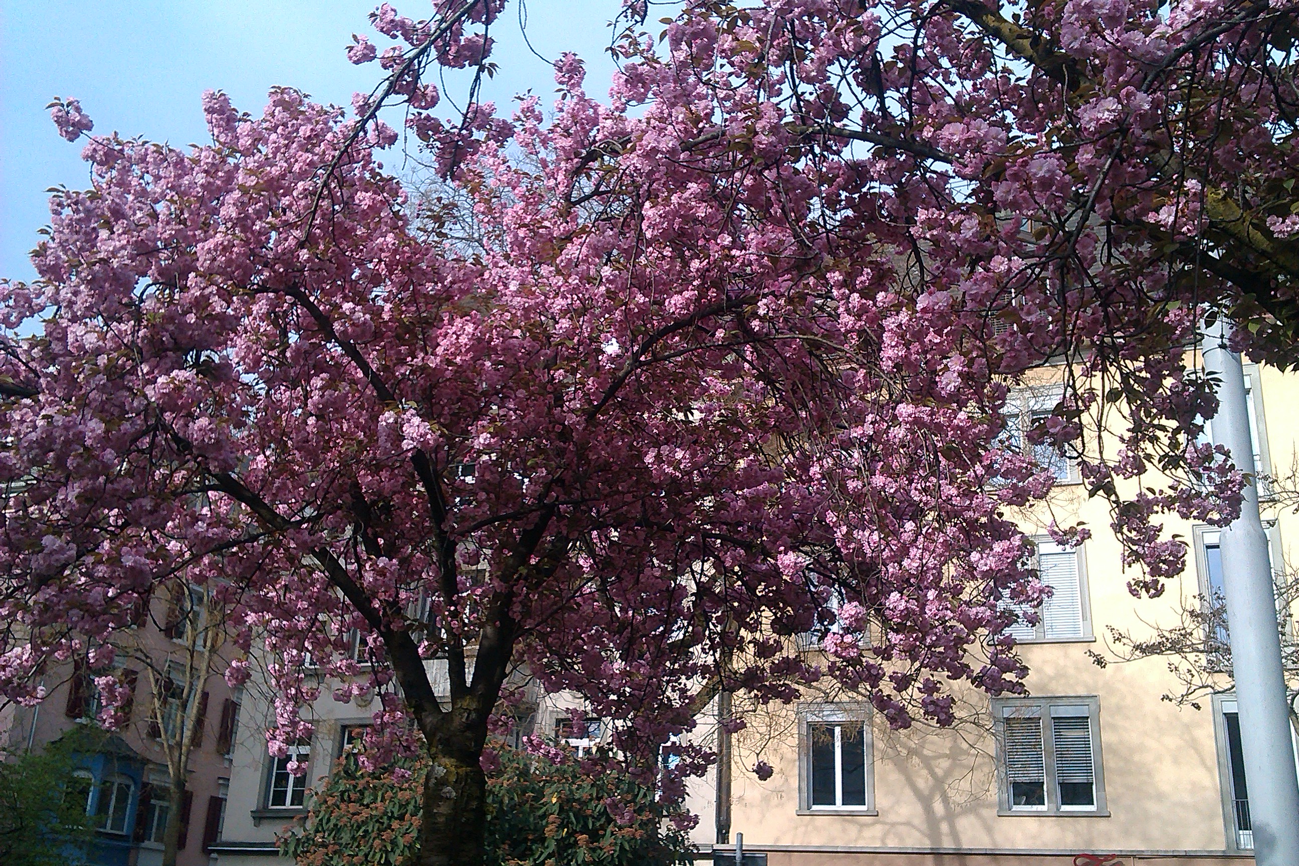 Un día cualquiera, la primavera llega a Zúrich. Los cerezos florecen.