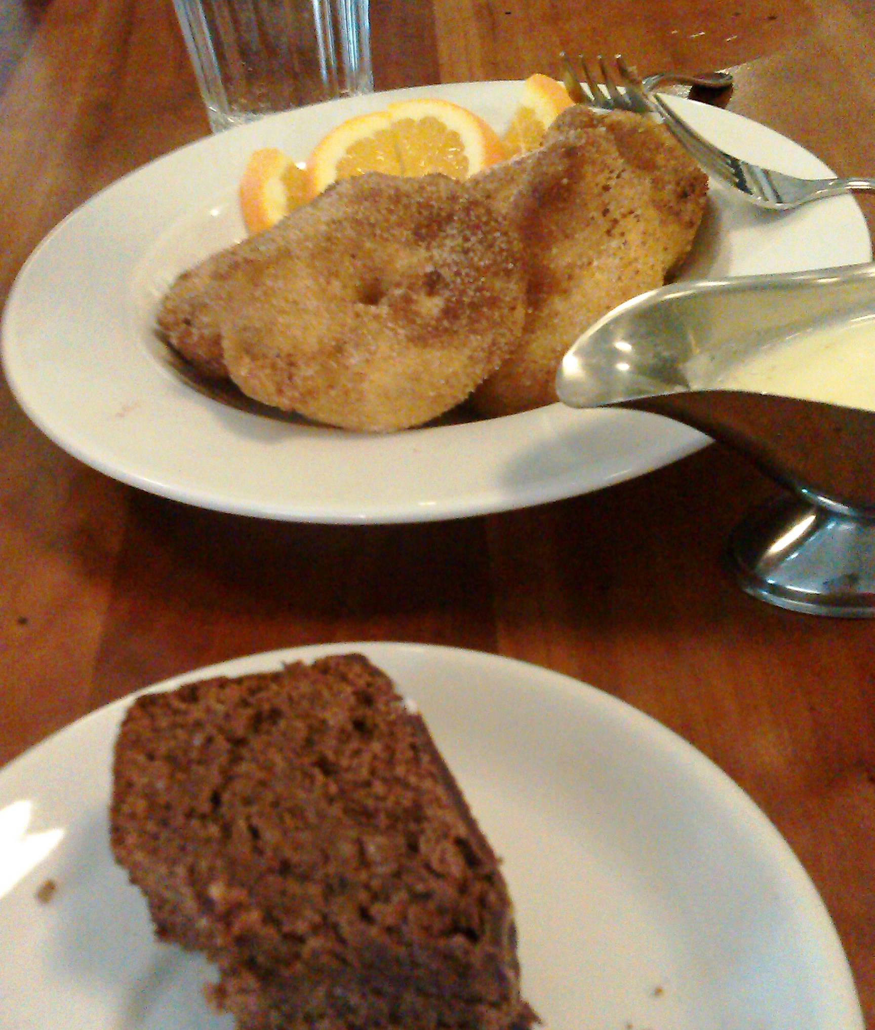 El bizcocho de chocolate bien, pero unas rodajas de manzana fritas y rebozadas en azúcar y cubiertas con salsa de vainilla son… un manjar de invierno que ya quisieran los dioses poder arrebatarnos a los humanos…