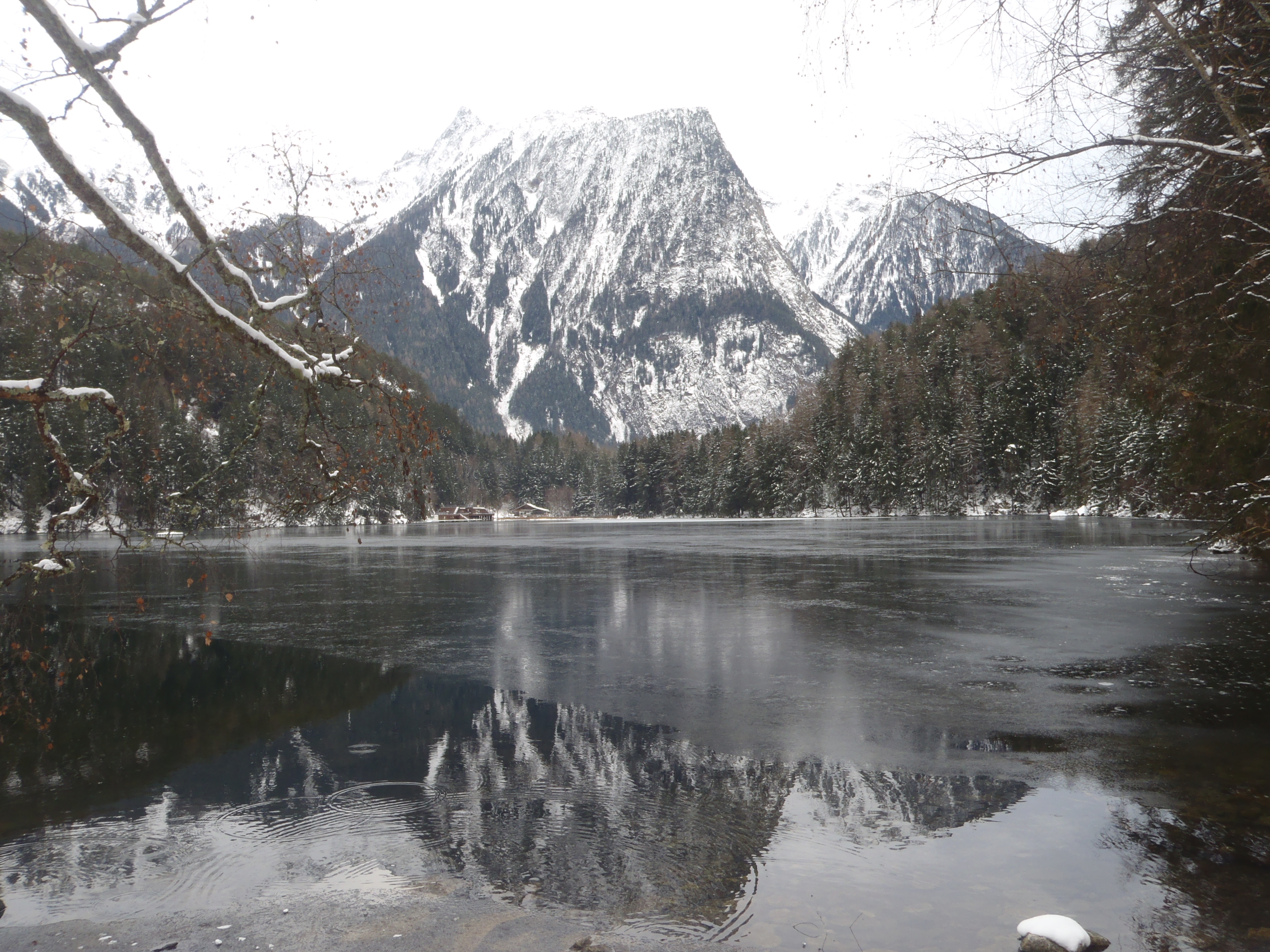 OLYMPUS DIGITAL CAMERAEl lago de Piburg es como un espejo cuando está congelado. Hay una pista de trineo cerca (Rodelbahn).