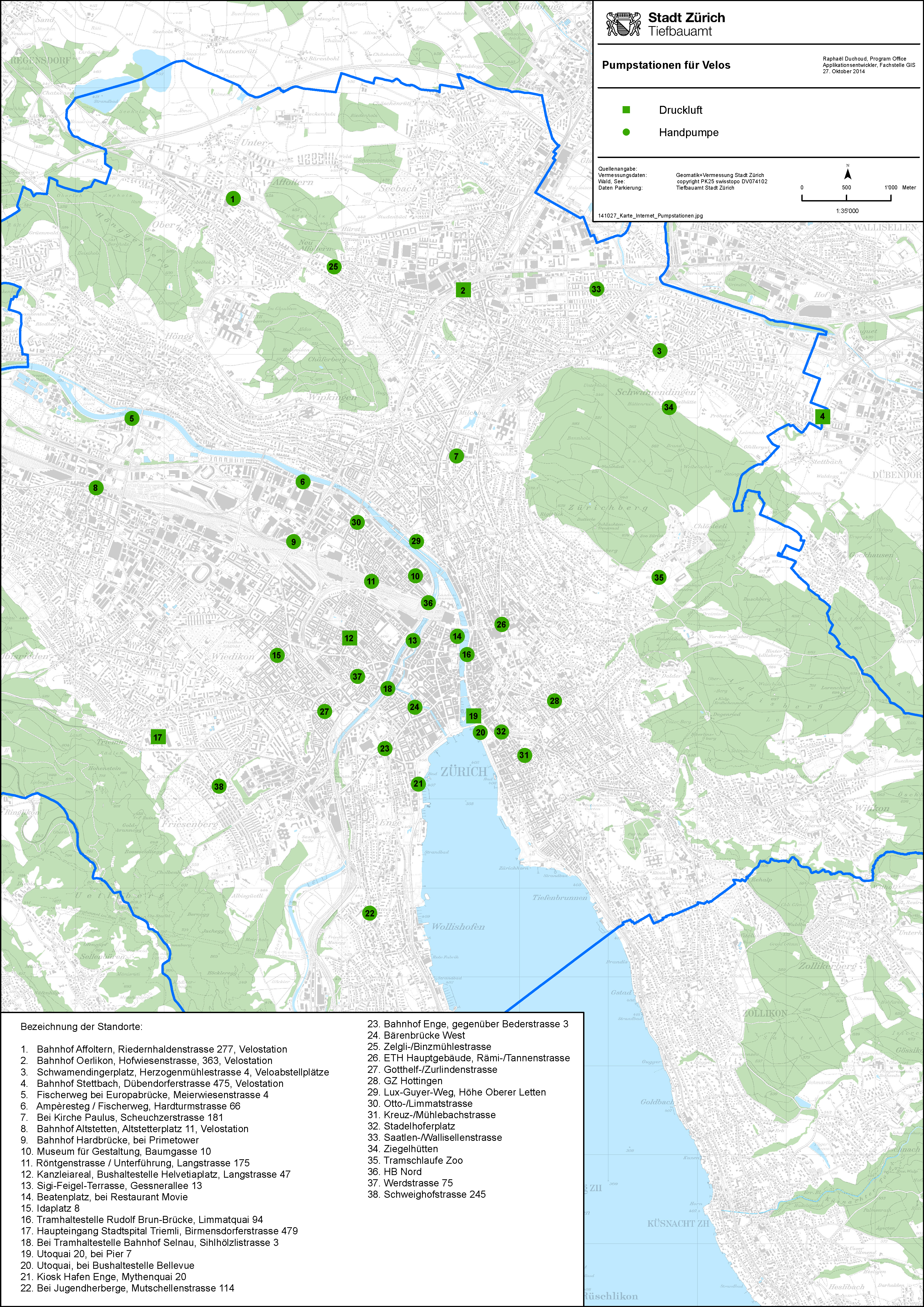 Durante todo el año se pueden coger esas bicicletas en la Estación de trenes central: Hauptbahnhof. Abiertas desde el 24 de abril estarán las casetas con las bicis en Pestalozziwiese, Bahnhof Enge, Viadukt y Bahnhof Alstetten. Desde el 1 de junio además en Bürkiplatz (sustituyendo la caseta que había en Bellevue).