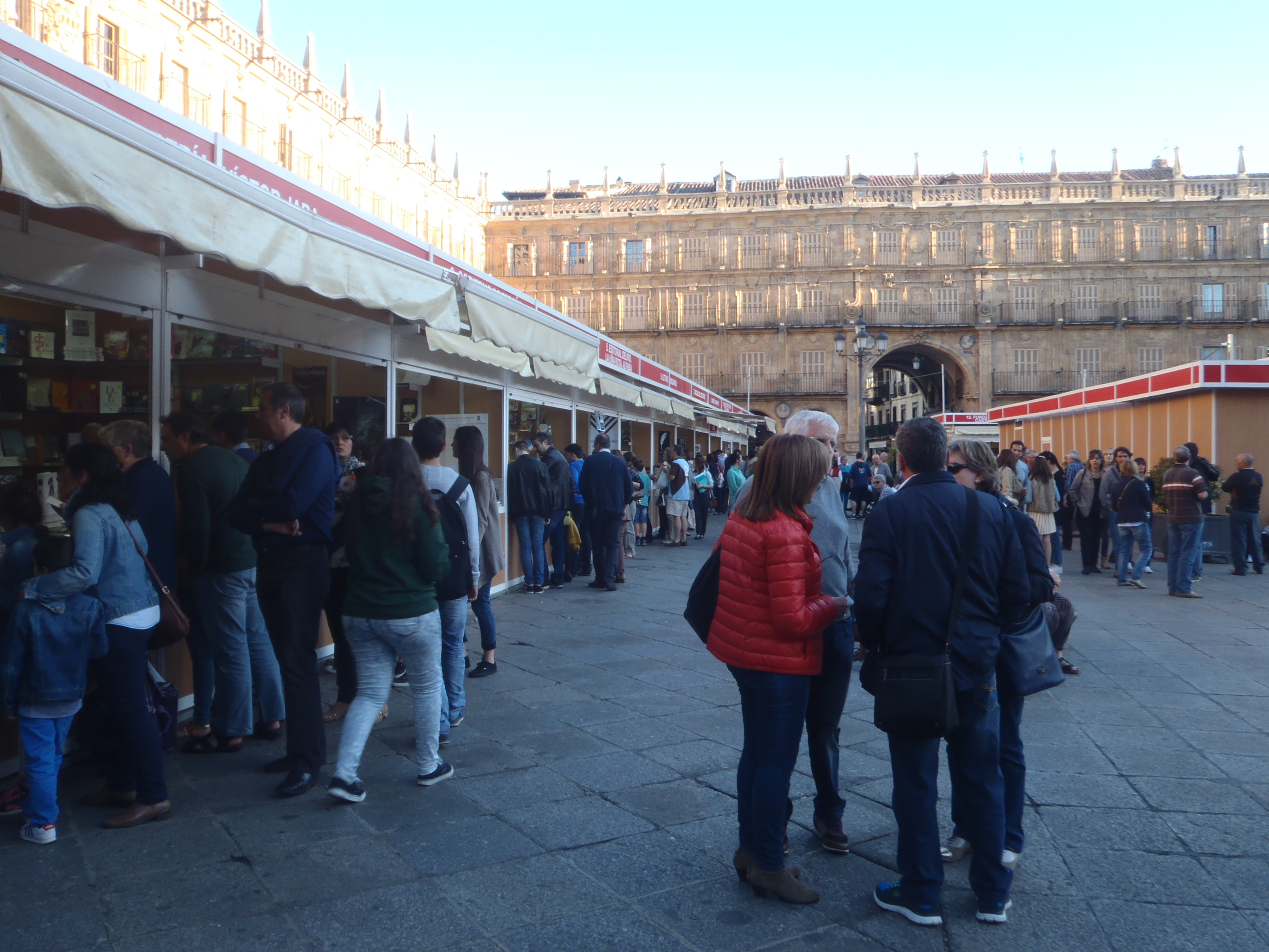 En la Plaza mayor nos encontramos con la Feria del Libro, y muchísima gente paseando y por fin nuestros amigos. Comenzamos a recorrer la tarde salamantina con su luz de atardecer.