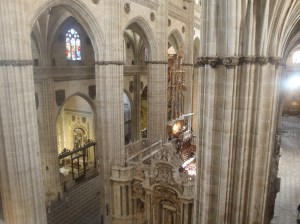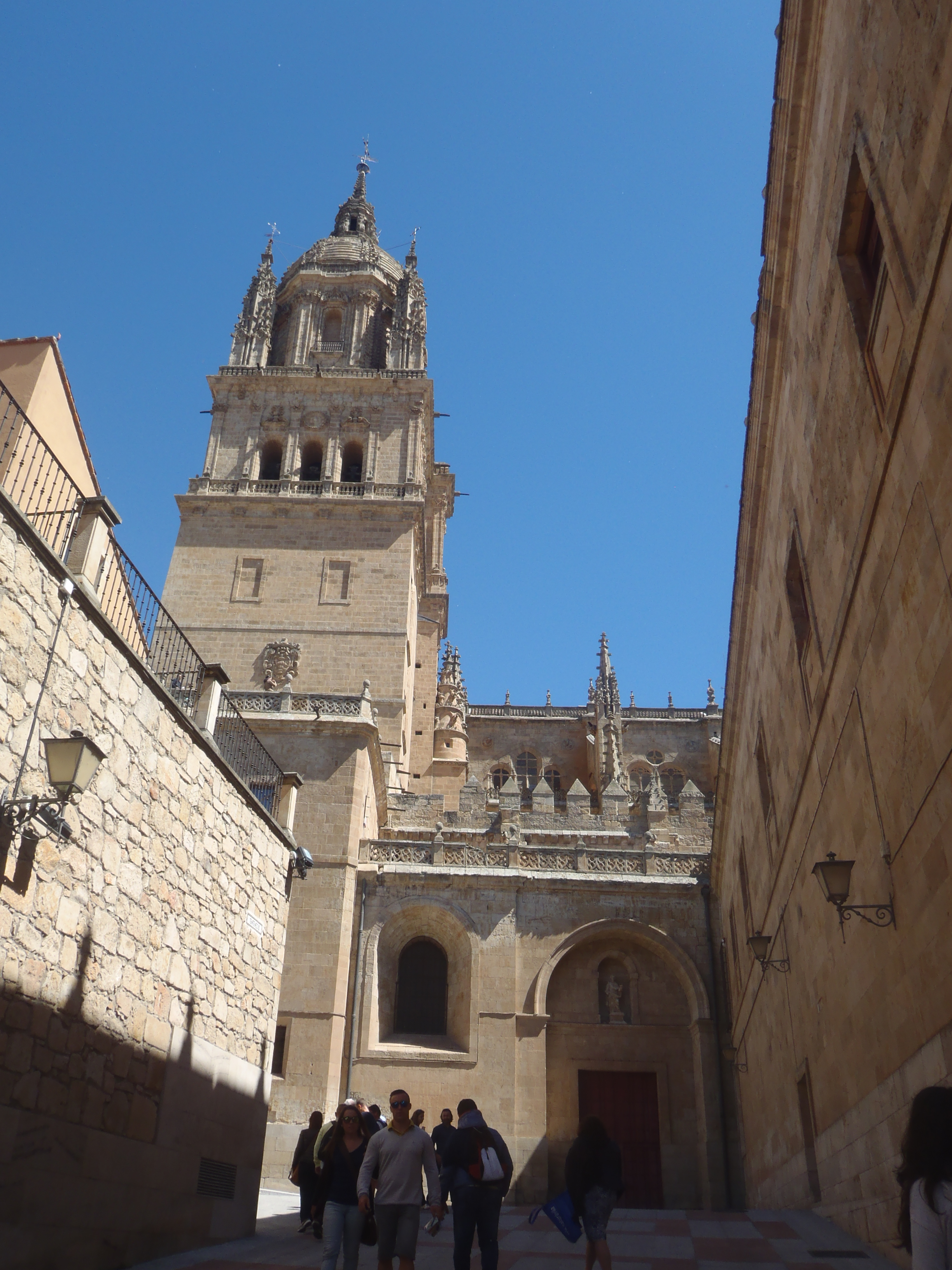 De ahí marchamos a la Catedral de Salamanca (la nueva y la vieja). La entrada cuesta 4,75€, pero es gratuita los martes de 10 a 12h. Pero nosotros lo que hicimos fue subir a la Torre (la entrada es de 3,75€, gratuita los martes de 10 a 12h). Como tengo vértigo no hice la última parte del tramo de la escalera de caracol, aún así vale la pena la visita.