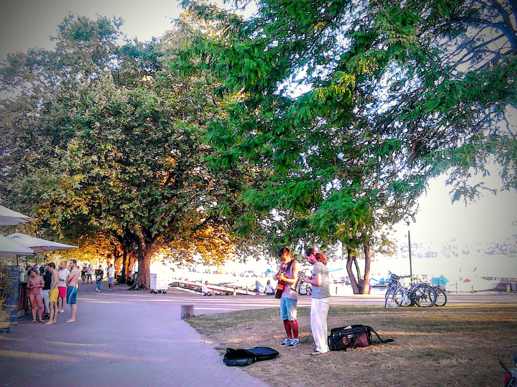 No es exclusivo del verano, también puedes encontrártelos en primavera, otoño y en invierno un domingo soleado. No sólo en el lago (principalmente, ya que es la zona dónde pueden tocar legalmente), también en Niederdorf. Músicos, dúos, tríos, artistas callejeros, etc.