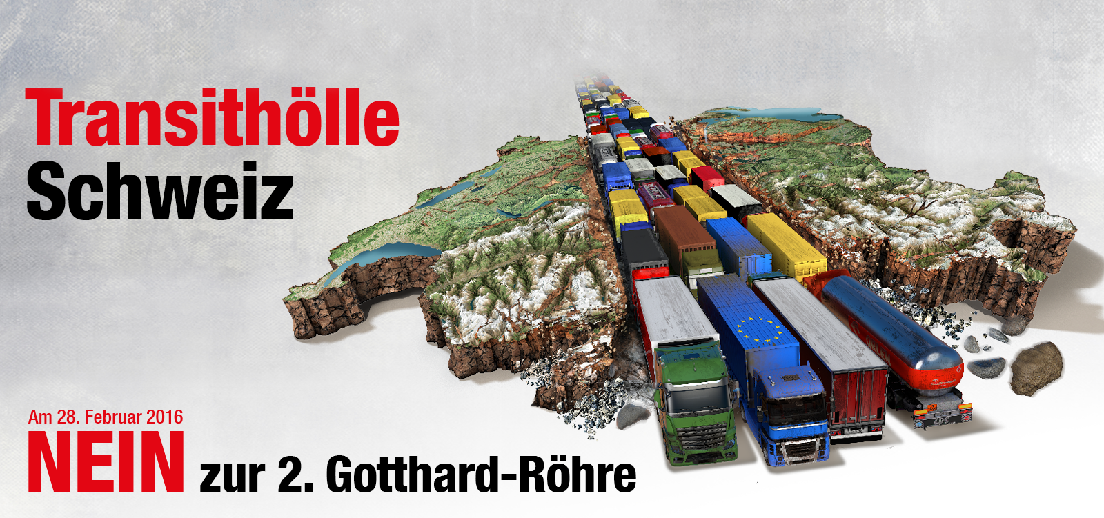 El túnel del Gotardo se inauguró en 1985 y ahora tiene que ser rehabilitado (es una de las carreteras más transitadas, con 16,9km uno de los túneles más largos del mundo). El Gobierno propone que antes de hacerlo, se construya una segunda galería para que no se detenga el tráfico de mercancías durante las obras. Costaría unos tres mil millones de francos. A favor indican también que el segundo túnel reduciría el número de colisiones frontales y de accidentes de tráfico (siguiendo así con las normas de seguridad europeas).