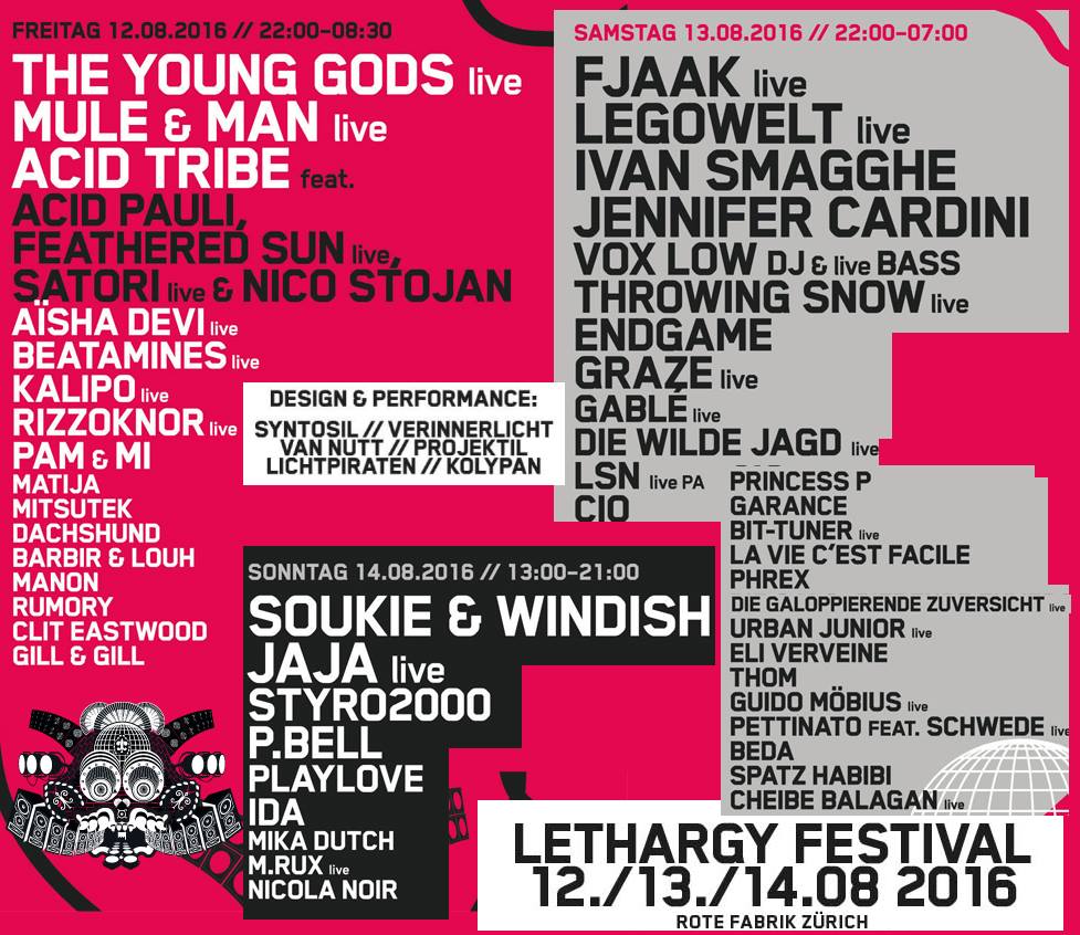 Eso sí, hay que pagar unos 45 CHF por el pase del viernes o del sábado. Actuarán gente como The Young Gods (¿os suena que ya os hablé acerca de etse grupo en la entrada sobre la vinculación de Suiza a David Bowie?), Mule & Man, Legowelt, Fjaak…