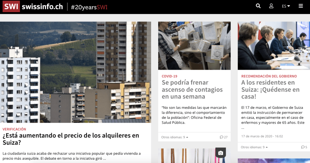 Si os interesa seguir informados en español sobre toda la actualidad del coronavirus, la página de Swissinfo (que pertenece a la televisión y radios suizas SRF, RSI, RTS).