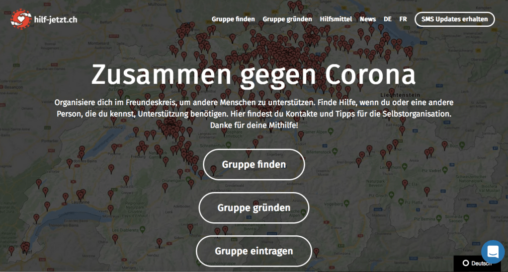 Otra página se llama hilf jetzt y en ella puedes crear un grupo o buscar un grupo que actúe cerca de tu código postal.