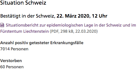 Mientras estaba escribiendo estas líneas, el BAG (Bundesamt für Gesundheit o Departamento estatal de Sanidad) ya ha actualizado los datos del domingo: