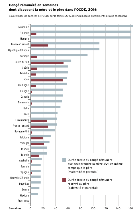 Según los datos de la OCDE que disponían entonces, los de 2016, se demostraba que Suiza estaba a la cola, solo por delante de México y Estados Unidos, en cuanto a bajas pagadas para padres y madres. Analizaron también 140 estudios diferentes aparecidos entre 2010 y 2017 y llegaron a ciertas conclusiones, a favor de introducir la baja de paternidad y de ampliar la maternal: