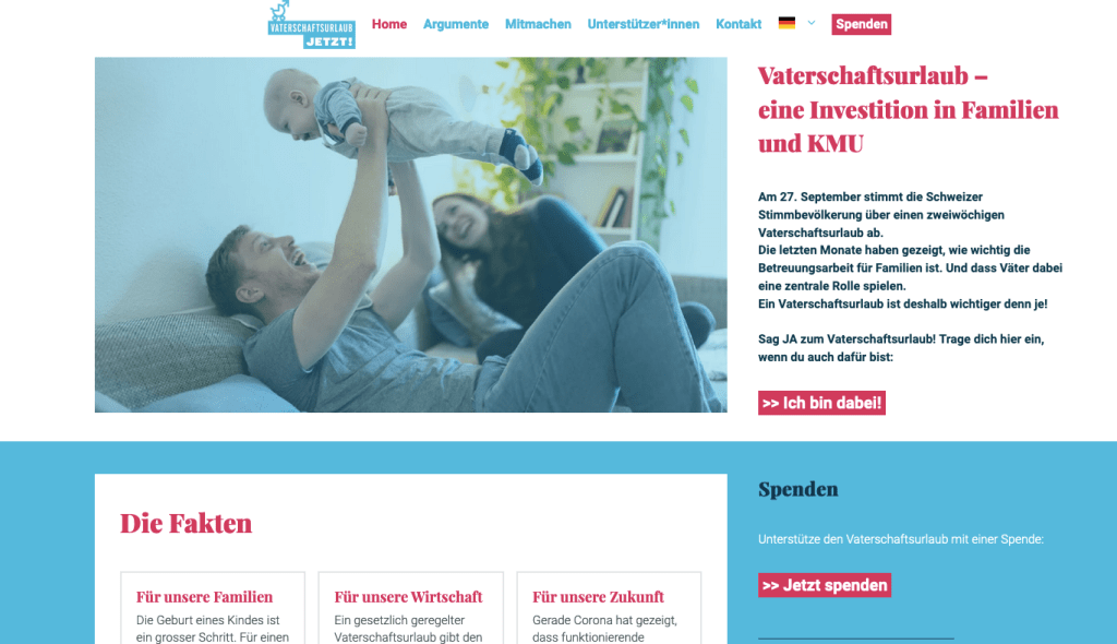 La idea de exigir un permiso de paternidad viene de lejos. El Parlamento suizo ha rechazado más de 30 solicitudes de licencia parental o de paternidad. Por eso, el 24 de mayo de 2016, más de 140 organizaciones lanzaron la iniciativa «Por un permiso de paternidad razonable – en beneficio de toda la familia- Für einen vernünftigen Vaterschaftsurlaub – zum Nutzen der ganzen Familie » bajo el paraguas de la asociación «¡Permiso de paternidad ahora!- Vaterschaftsurlaub jetzt!“.
