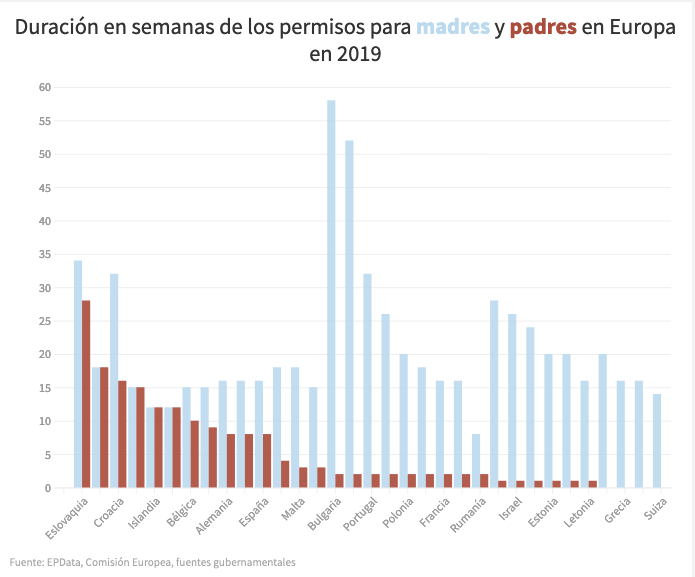 PS. Os dejo los datos de 2019 de bajas de paternidad y maternidad en Europa. Fuente RTVE.