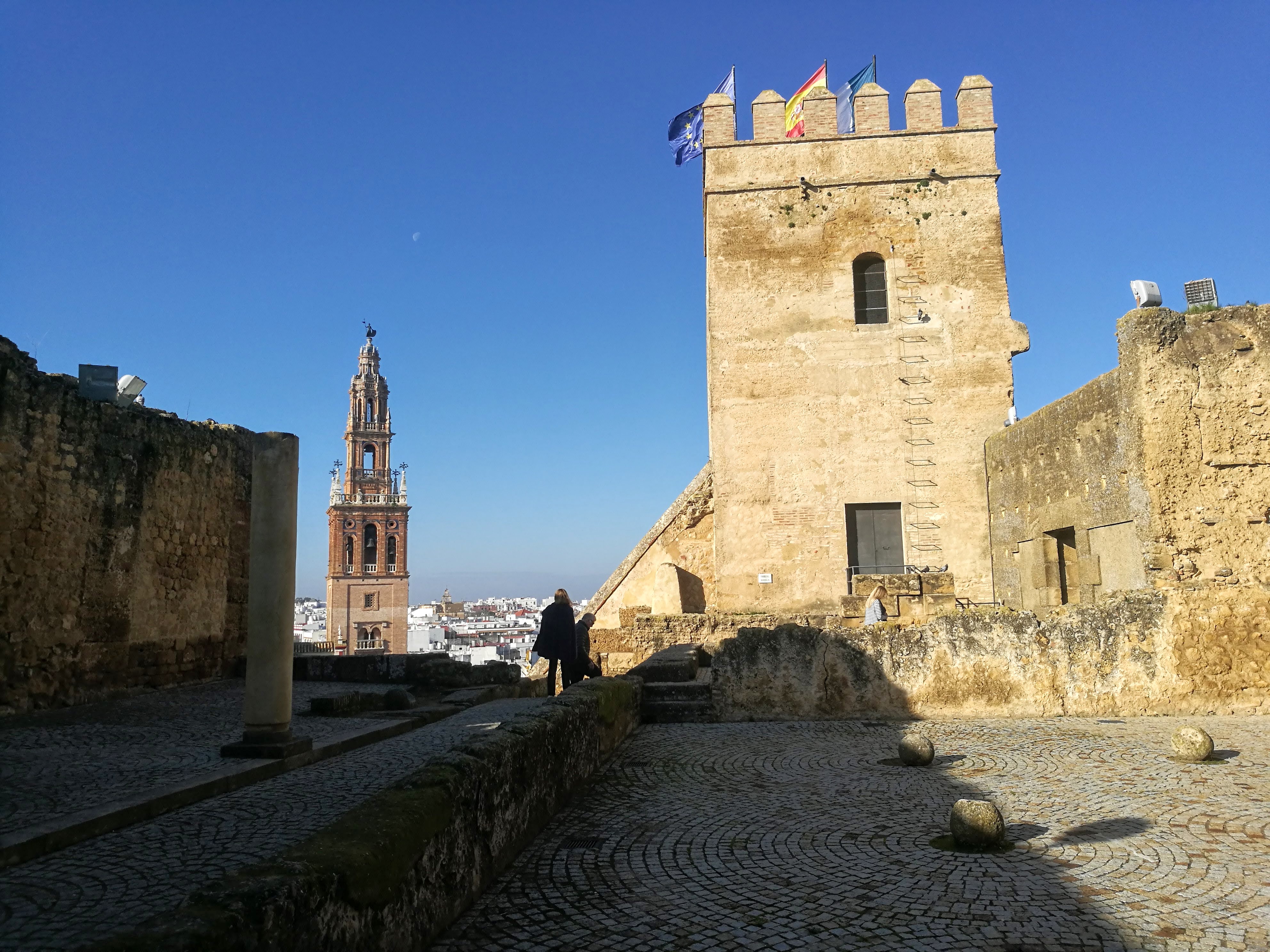 Nuestra ruta comenzó en el Alcázar de la Puerta de Sevilla, donde en la oficina de turismo nos informaron de la posibilidad de apuntarse a la visita guiada en español que empezaba en poco tiempo. Visitamos el Alcázar (2 euros por persona, reducida 1 euro), varias iglesias y un museo. Desde dicho Alcázar podremos ver la Parroquia de San Pedro, de la que destaca la Giraldilla, es decir, la torre, por su similitud con la Giralda de Sevilla.