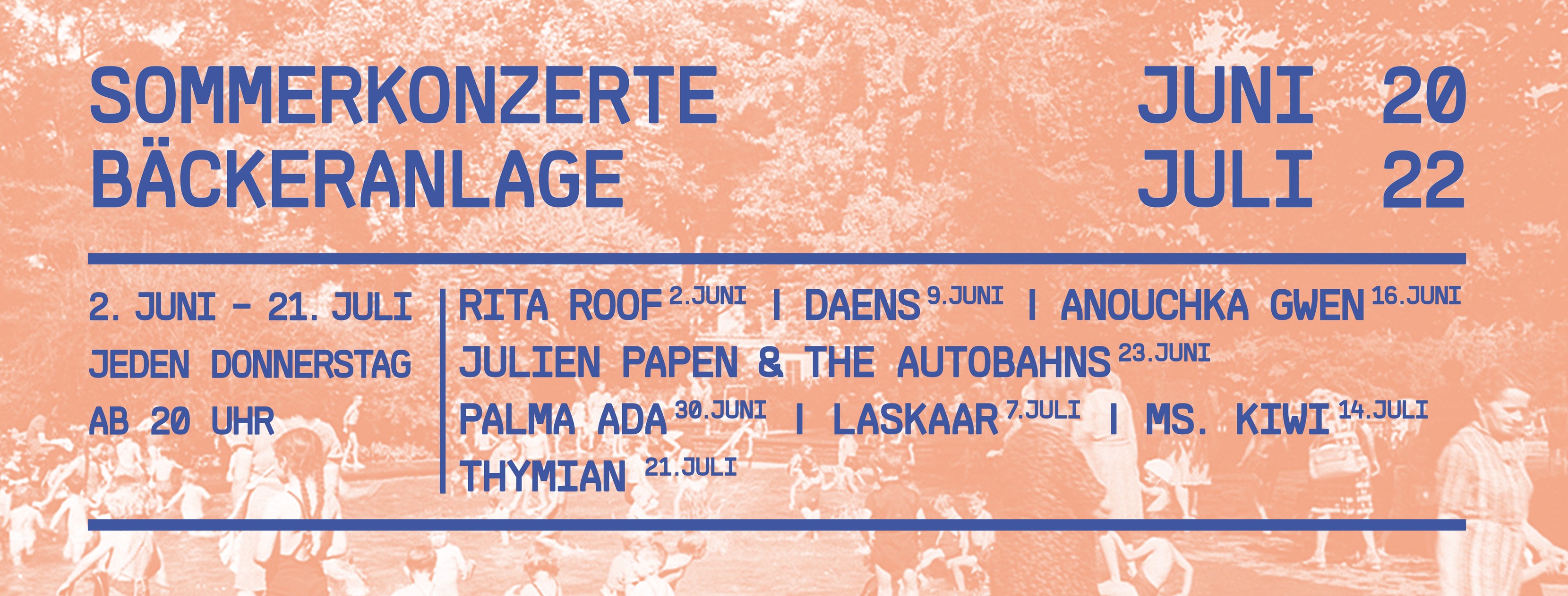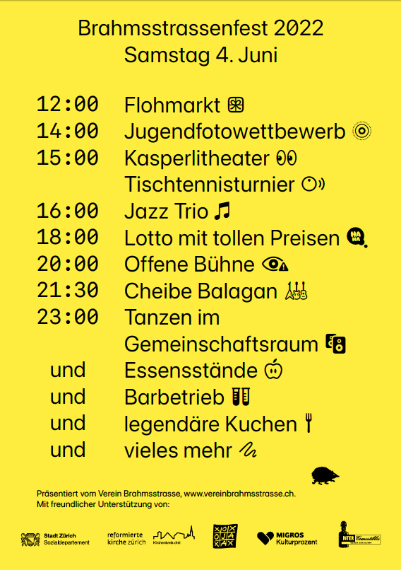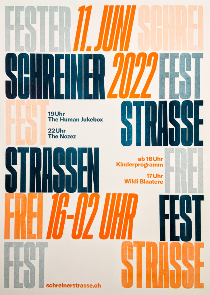 Cerca de la Bäckeranlage, el sábado 10 de junio, a las 16h comienza en la calle Schreinerstrasse el programa infantil, a las 17h Wildi Blaaterli, a las 19h el hombre caja (The Human Jukebox) y a las 22h The Nozez.