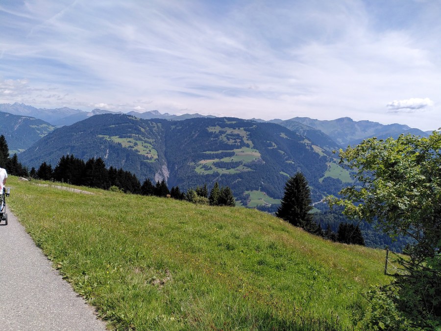Desde arriba se pueden ver abajo Grüsch, y frente nuestro otros montes de la zona de Prättigau.